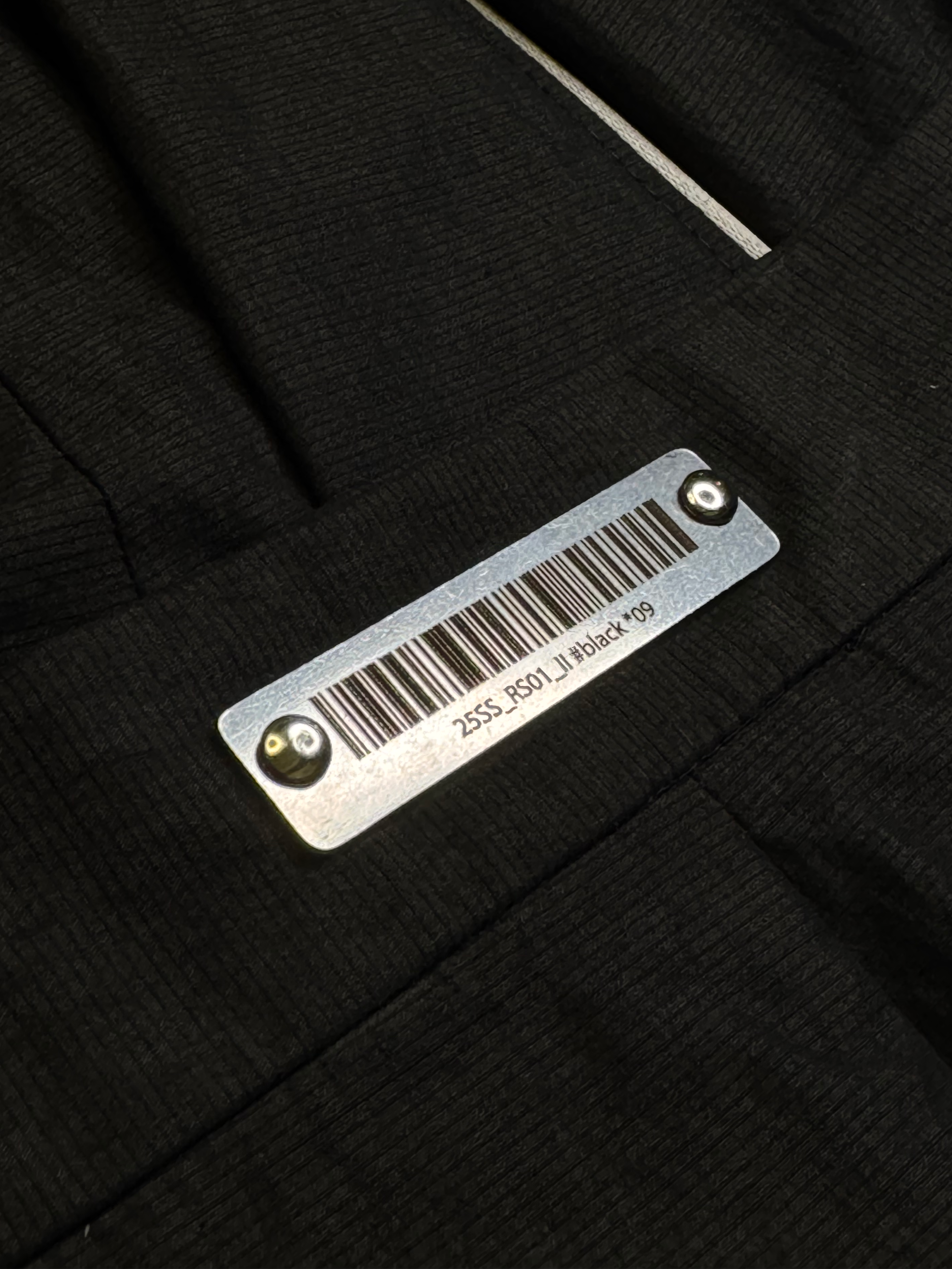 - Every clothing piece includes a metal tag with a unique number and barcode, authenticating it as a limited edition item.